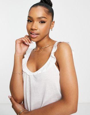 This JDY mini swing dress is a stylish and comfortable choice for casual wear. Designed for women, it features a flattering V-neckline and delicate ruffle trim along the neckline and straps, adding a touch of feminine charm. The dress has a regular fit, ensuring ease of movement and a relaxed silhouette. Crafted from a soft and stretchy jersey fabric blend, it is made of 85% Polyester and 15% Linen, offering both comfort and durability. Its simple yet chic design makes it perfect for various occasions, from everyday outings to beach days or as a light summer dress. The white color makes it a versatile piece that can be easily styled with different accessories.