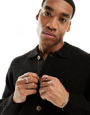 This black polo shirt is designed for a relaxed fit and features a distinctive fisherman rib knit texture. It includes a classic polo collar and a button-through placket, complemented by long sleeves. Crafted from 100% acrylic, this comfortable and casual shirt is ideal for everyday wear or as a layering piece. The relaxed silhouette and textured knit offer a stylish yet laid-back aesthetic, making it a versatile addition to any wardrobe.
