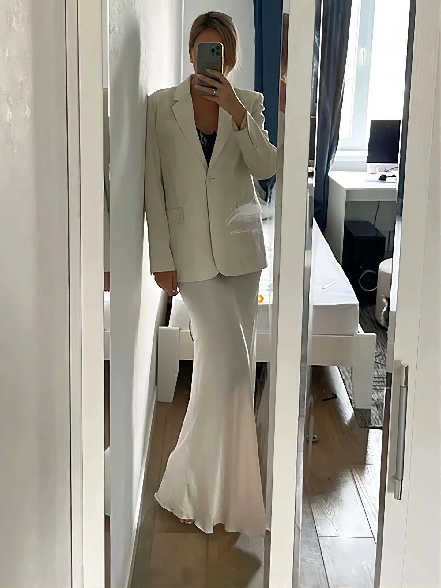 This elegant Tossy maxi skirt is designed for a flattering silhouette with its high waist and slim fit. Crafted from a blended polyester fabric, it offers a non-stretch, satin-like finish. The solid pattern is enhanced by subtle patchwork detailing, making it a versatile piece for both casual streetwear and more dressed-up occasions. The ankle-length cut and A-line silhouette contribute to its sophisticated and timeless appeal, perfect for spring and summer wear. This skirt is ideal for women seeking a chic and comfortable addition to their wardrobe.